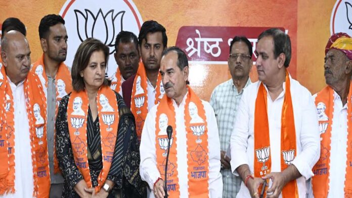 जयपुर। भाजपा प्रदेश अध्यक्ष मदन राठौड़ ने नागौर और सवाई माधोपुर के वरिष्ठ कांग्रेसी नेताओं को सोमवार को भाजपा प्रदेश कार्यालय पर पार्टी का दुपट्टा पहनाकर भाजपा परिवार में शामिल किया। प्रदेश अध्यक्ष मदन राठौड़ और प्रदेश उपाध्यक्ष ज्योति मिर्धा की उपस्थिति में नागौर की राजनीति में सक्रिय भूमिका निभाने वाले नागौर कांग्रेस के पूर्व जिलाध्यक्ष सुखवीर सिंह चौधरी ने सरपंच, जिला परिषद सदस्य, पूर्व सदस्यों के साथ भाजपा परिवार की सदस्यता ग्रहण की।