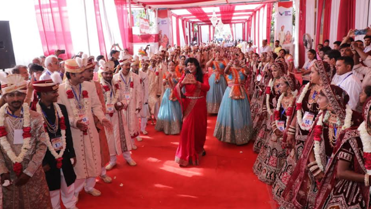 समारोह में शिव-पार्वती और कृष्ण-रुक्मिणी विवाह पर आधारित सांस्कृतिक प्रस्तुतियों ने वातावरण को भक्तिमय बना दिया। विवाह के बाद नववधुओं की प्रतीकात्मक डोली विदाई के क्षणों ने माहौल को भावुक कर दिया, जहाँ खुशी और भावनाओं के आँसू साथ-साथ बहते नजर आए।
