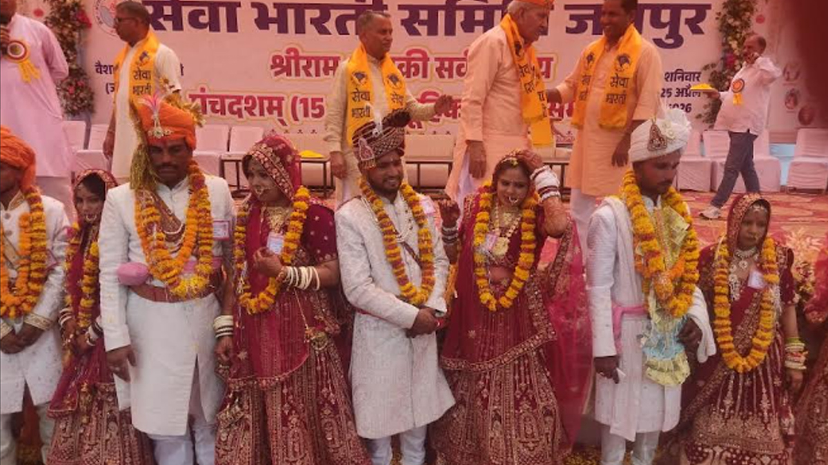जयपुर। जानकी नवमी के पावन अवसर पर अम्बाबाड़ी स्थित उच्च माध्यमिक बालिका आदर्श विद्या मंदिर में सेवा भारती समिति के तत्वावधान में 15वां सर्वजातीय सामूहिक विवाह सम्मेलन हर्षोल्लास के साथ संपन्न हुआ। समारोह में एक ही मंडप के नीचे 15 विभिन्न समाजों के 47 जोड़े वैदिक मंत्रोच्चारण के साथ परिणय सूत्र में बंधे, जिनमें 7 अंतर्जातीय विवाह भी शामिल रहे।