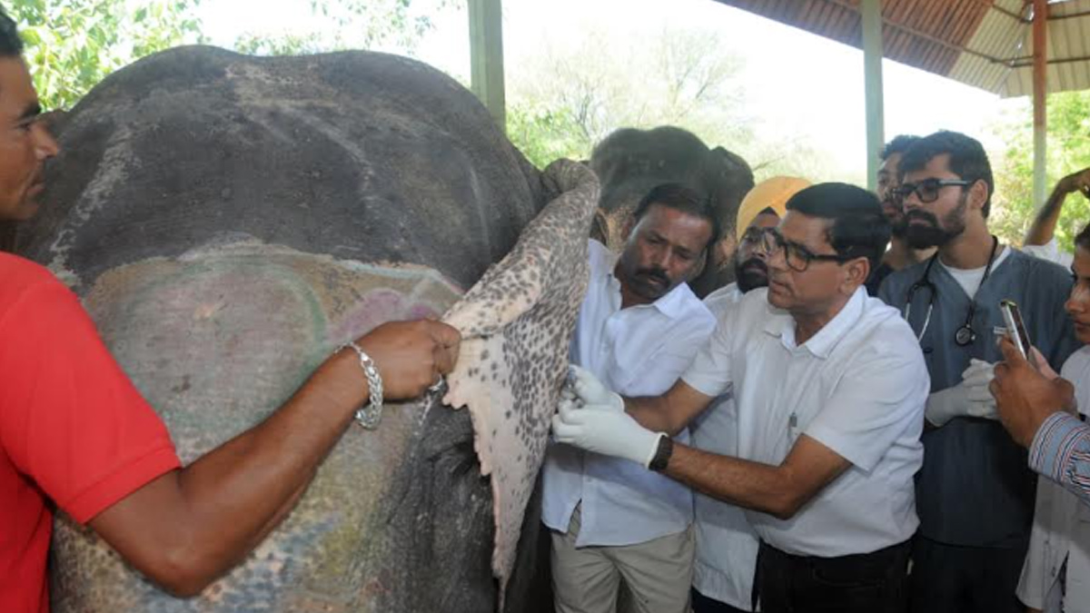 जयपुर। वन विभाग की ओर से हाथी गांव में दो दिवसीय हाथी स्वास्थ्य परीक्षण शिविर का आयोजन किया जा रहा है। शिविर के पहले दिन 54 हाथियों का विस्तृत स्वास्थ्य परीक्षण किया गया। जिसमें उनके रक्त, लीद, ओरल कैविटी और आंखों के सैंपल लिए गए।