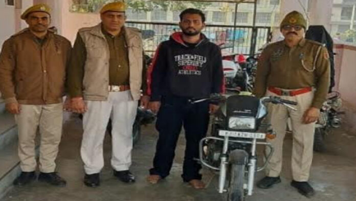 जयपुर। पुलिस थाना गलता गेट ने दुपहिया वाहन चुराने वाले एक वाहन चोर को गिरफ्तार कर उसके पास से चोरी का एक दुपहिया वाहन भी बरामद किया है। फिलहाल आरोपित से पूछताछ की जा रही है।