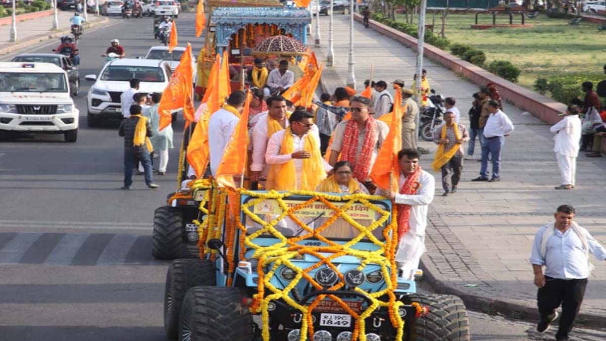 जिसमें सबसे आगे चल रहीं ओपन जीप में जयपुर शहर सांसद मंजू शर्मा ने महा रैली का नेतृत्व किया। वही इस महा रैली में दो विशाल रथ शामिल हुए। जिसमें सबसे आगे प्रथम पूज्य गणेश जी महाराज की प्रतिमा को विराजमान किया गया। वही दूसरे रथ में भगवान परशुराम की प्रतिमा को विराजमान किया गया।