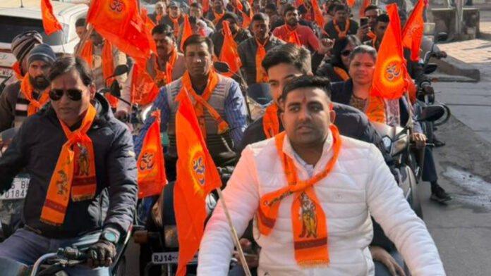 जयपुर। राष्ट्रीय स्वयंसेवक संघ (आरएसएस) के शताब्दी वर्ष के उपलक्ष्य में रविवार को देशभर में आयोजित किए जा रहे विराट हिंदू सम्मेलन के अंतर्गत जन-जागरूकता फैलाने और हिंदू समाज को एकजुट करने के उद्देश्य से मानसरोवर भाग की कमला नेहरू नगर बस्ती में भव्य दुपहिया वाहन (बाइक) रैली का आयोजन किया गया।