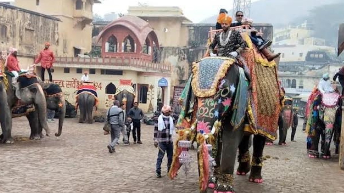 जयपुर। नववर्ष 2026 के अवसर पर गुलाबी नगरी जयपुर पर्यटकों से पूरी तरह गुलजार नजर आई। नए साल की शुरुआत पर आमेर किले पर सजे-धजे हाथियों ने देसी-विदेशी सैलानियों का शाही अंदाज में स्वागत किया, जिससे पर्यटन स्थलों पर खासा उत्साह देखने को मिला।
