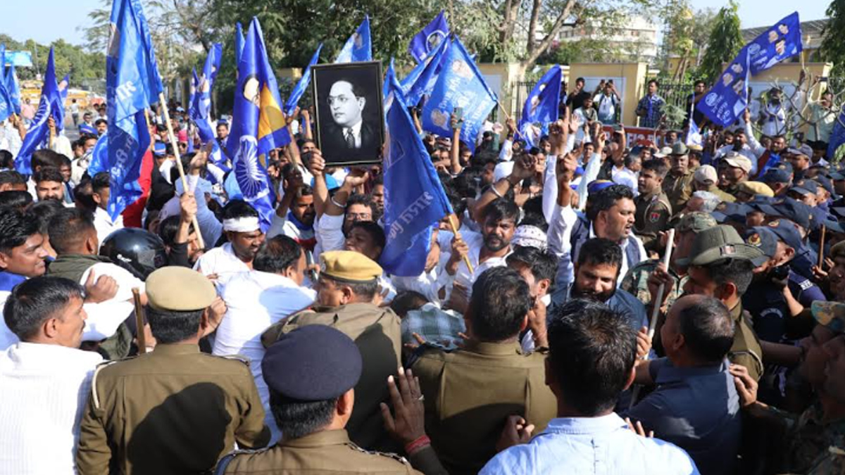 जयपुर। प्रदेश में समान नागरिक संहिता (यूजीसी) को लेकर जारी घमासान के बीच गुरुवार को राजधानी के शहीद स्मारक पर समर्थन में बड़ा प्रदर्शन हुआ। आजाद समाज पार्टी (कांशीराम) और भीम आर्मी के नेतृत्व में एससी,एसटी और ओबीसी समाज के कार्यकर्ताओं ने यूजीसी के पक्ष में हुंकार भरी। इस दौरान प्रदर्शनकारियों ने मुख्यमंत्री आवास की ओर कूच करने का प्रयास किया। जिन्हें पुलिस ने बैरिकेड्स लगाकर रोका।