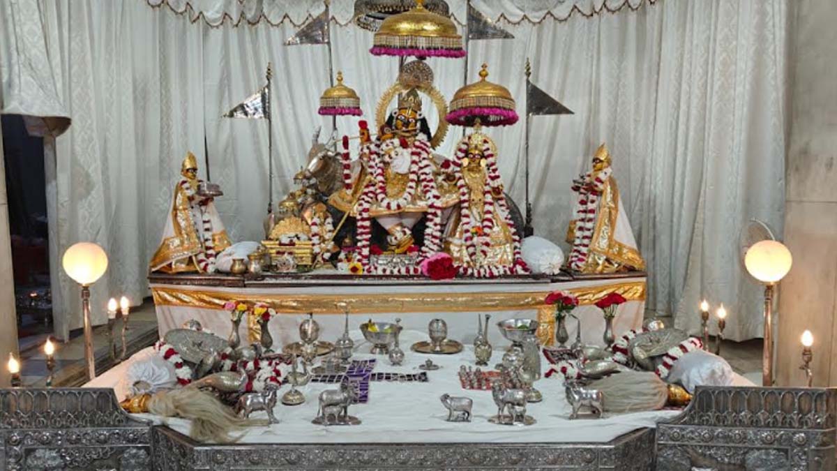 मंदिर के सेवाधिकारी मानस गोस्वामी ने बताया कि ठाकुर श्रीजी के समक्ष शरदोत्सव में विशेष खाट सजाई गई। इसमें शतरंज, चौसर की बाजी सजाई गई। वहीं गाय, धूप दान, इत्र दान, पान दान से खाट को सुसज्जित किया गया। इस झांकी के दर्शन करने श्रद्धालु उमड़ पड़े। श्रद्धालुओं के उत्साह को देखते हुए झांकी का समय बढ़ाना पड़ा।