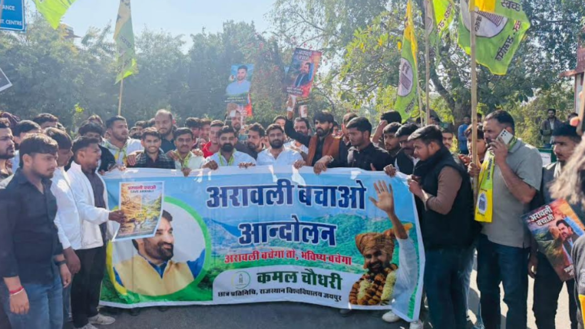 जयपुर। अरावली पर्वतमाला के संरक्षण को लेकर राजधानी में छात्र और युवा सक्रिय हो गए हैं। बुधवार को राजस्थान विश्वविद्यालय परिसर में अरावली बचाओ आंदोलन के तहत सांकेतिक प्रदर्शन आयोजित किया गया। इस प्रदर्शन का नेतृत्व छात्र नेता कमल चौधरी ने राष्ट्रीय लोकतांत्रिक पार्टी (आरपीएल) के बैनर तले किया।