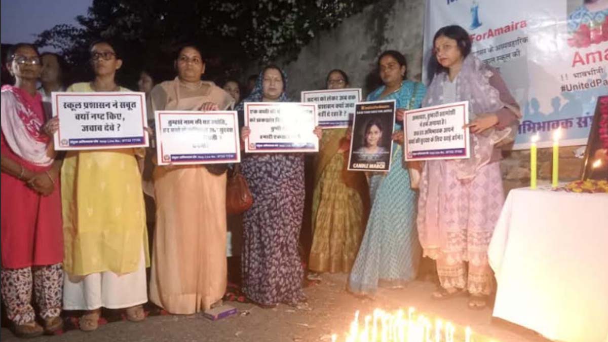 जयपुर। संयुक्त अभिभावक संघ के आह्वान पर बुधवार की शाम को मानसरोवर स्थित नीरजा मोदी स्कूल के बाहर अभिभावक बड़ी संख्या में एकजुट हुए। जिसमें अमायरा के परिवारजनों सहित विभिन्न संगठनों के पदाधिकारियों ने भाग लिया। कैंडल मार्च कार्यक्रम में मानसरोवर अधिवक्ता क्लब, अग्रवाल समाज सेवा समिति, टोंक रोड़, राजस्थान स्वास्थ्य सुधार संघर्ष समिति, अखिल भारतीय दिगंबर जैन युवा एकता संघ, आदिवासी महिला विकास संघ, उड़ान चेरिटेबल ट्रस्ट आदि भी सम्मिलित हुए।