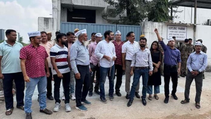 जयपुर। राजस्थान में केसंस फार्मा द्वारा निर्मित खांसी की सिरप से अब तक तीन मासूम बच्चों की मौत हो चुकी है। आम आदमी पार्टी ने इसे प्रदेश सरकार की घोर लापरवाही और दोषी कंपनियों को संरक्षण देने का गंभीर उदाहरण बताया है। इसी मुद्दे पर शनिवार जयपुर के सरना डूंगर इंडस्ट्रियल एरिया स्थित केसंस फार्मा फैक्ट्री के बाहर “हल्ला बोल प्रदर्शन” किया गया।