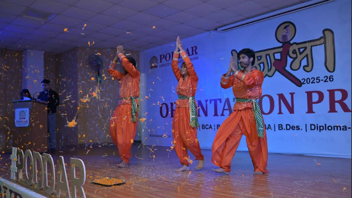 जयपुर। आंखों में सुनहरे सपने लिए अंडर ग्रेजुएट स्टूडेंट्स ने वक्ताओं के प्रेरक उद्बोधन के बीच समर्पण के साथ लक्ष्य प्राप्त करने का संकल्प लिया। मौका था पोद्दार इंटरनेशनल कॉलेज के साप्ताहिक ओरिएंटेशन “आरम्भ 2025-26“ के पहले दिन आयोजित संकल्प सत्र का। गणेश पूजन एवं सरस्वती वंदना के साथ कॉलेज के विभिन्न यूजी कोर्सेज बीएससी, बीसीए, बीबीए, बीकॉम, बीडेस, बीए समेत अन्य कोर्स के स्टूडेंट्स का तिलक लगाकर एवं मुंह मीठा करवाकर ओरिएंटेशन कार्यक्रम की शुरूआत हुई।