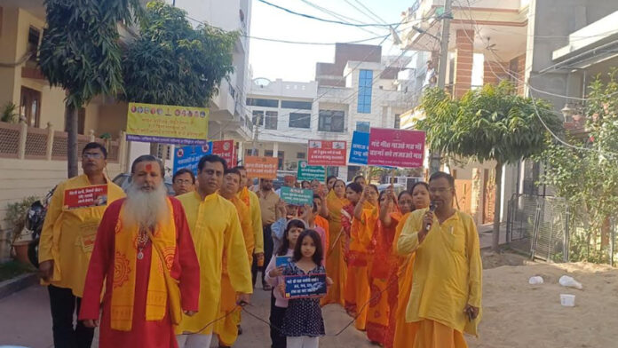 यज्ञ से पूर्व व्यसन मुक्ति रैली निकाली गई। पीली धोती-कुर्ते में गायत्री परिवार के कार्यकर्ताओं ने अरे देश को बढऩे दो, मत शराब को बनने दो…, नशा नाश की जड़ है भाई, इसने ही सब आग लगाई…, गांजा-भांग-शराब तंबाकू तन–मन-धन के ये सब डाकू…, जैसे नारे लगाते हुए कॉलोनी में नशा मुक्ति का संदेश दिया। नशा मुक्ति रैली विकासनगर विस्तार स्थित श्री राधा कृष्ण मंदिर से रवाना होकर विभिन्न कॉलोनियों से होते हुए पुन: श्री राधा कृष्ण मंदिर पहुंची। यहां कॉलोनवासियों को नशा मुक्ति का संकल्प कराया गया।