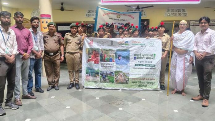 जयपुर। नगर निगम जयपुर हैरिटेज के सफाई अपनाओ, बीमारी भगाओ अभियान के तहत गुरुवार को किशनपोल जोन के वार्ड संख्या 73 में स्थित एस. एम. जैन सुबोध उच्च प्राथमिक एवं उच्च माध्यमिक विद्यालय के छात्राओं ने बापू बाजार में एक विशाल जागरूकता रैली का आयोजन किया।