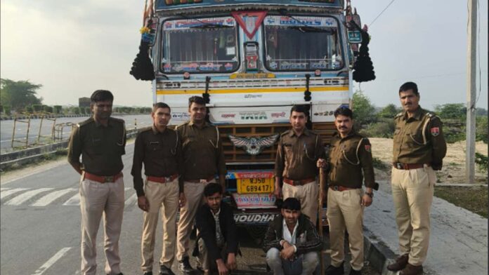 अतिरिक्त पुलिस महानिदेशक एंटी गैंगस्टर टास्क फोर्स दिनेश एमएन ने बताया कि टीम को महत्वपूर्ण गोपनीय जानकारी मिली कि एक ट्रक कंटेनर में ग्रेनाइट की बिल्टी की आड़ में तस्करी की जा रही है। इस सूचना के आधार पर गुलाबपुरा थाना पुलिस ने त्वरित नाकाबंदी की। नाकाबंदी तोड़कर भागे संदिग्ध ट्रक को पीछा कर चौकी 29 मील चौराहा पुलिया पर रुकवा लिया। ट्रक की विधिवत तलाशी लेने पर उसमें छिपाए गए 15 कट्टों में भरा यह भारी मात्रा में 304 किलो 700 ग्राम अफीम डोडा चूरा बरामद हुआ। इस मामले में दोनों भाई पूरणा राम लेघा (40) और देवेंद्र उर्फ देवा (21) को गिरफ्तार किया गया।