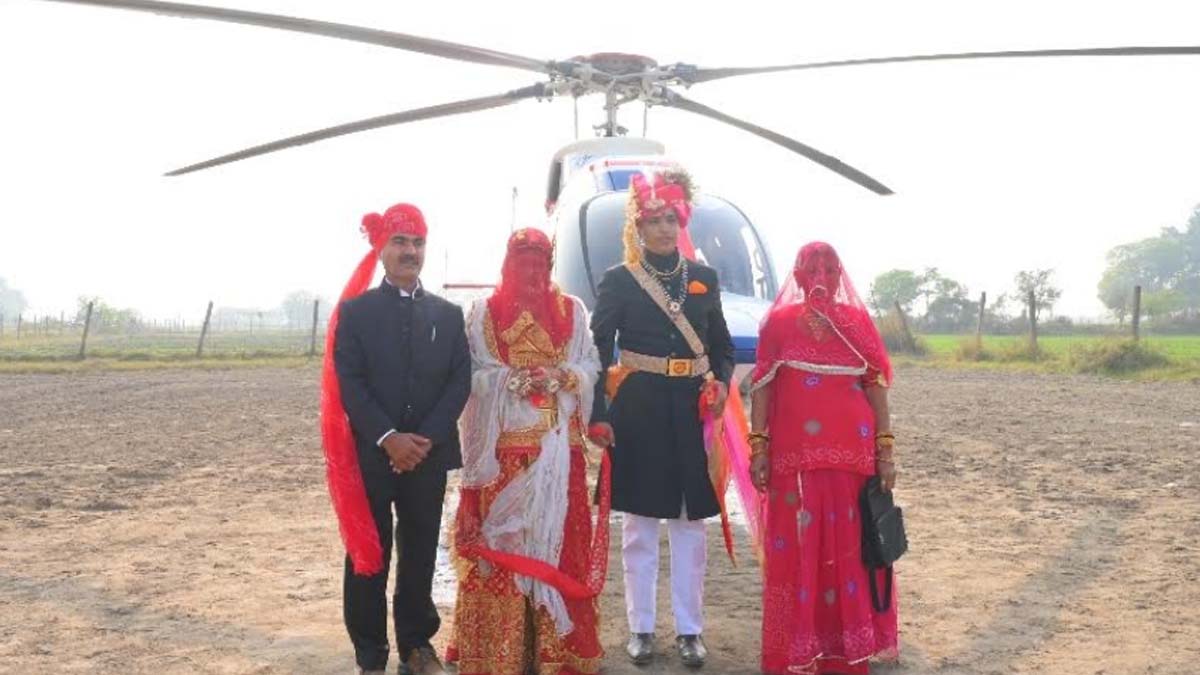 जयपुर। जयपुर ग्रामीण जिले के उपखंड के ग्राम हथेली में आयोजित एक अनूठे विवाह समारोह ने पूरे क्षेत्र का ध्यान अपनी ओर खींच लिया। निबोल से बारात आई और दूल्हा–दुल्हन की विदाई हेलीकॉप्टर से होने के कारण यह विवाह आसपास के गांवों में चर्चा का विषय बना रहा।