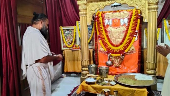 जयपुर। दिल्ली रोड स्थित पंचमुखी हनुमान मन्दिर मे दिल्ली बाईपास अन्नकूट महोत्सव महंत रामरज दास त्यागी द्वारा हनुमान जी के भोग लगा आरती की गई हनुमान जी महाराज की फूल बंगला झांकी सजाकर दीप प्रज्जवलन और मंगलाचरण के बाद संध्या आरती हुई।