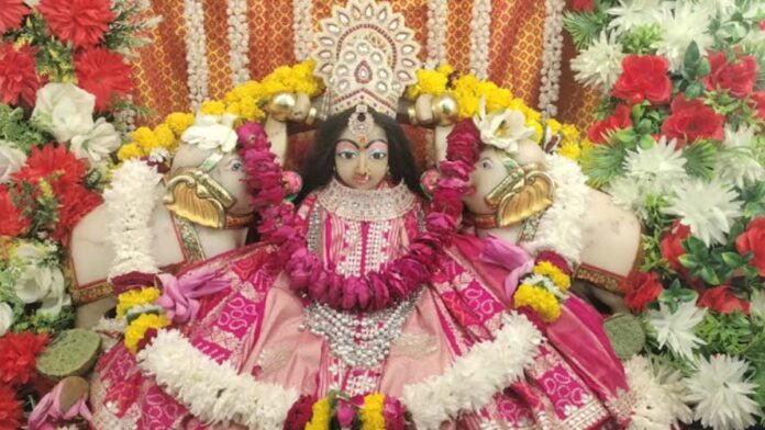 जयपुर। चांदपोल बाजार नारगढ़ रोड स्थित माता महालक्ष्मी के मंदिर में मंदिर महंत धर्मेश शर्मा के सानिध्य में महालक्ष्मी माता के सवामन दूध से पंचामृत अभिषेक किया 11 विद्वान ब्राह्मणों द्वारा श्री सूक्त और पुरुष सूक्त माता महालक्ष्मी मंत्र के जाप से महालक्ष्मी का अभिषेक हुआ।
