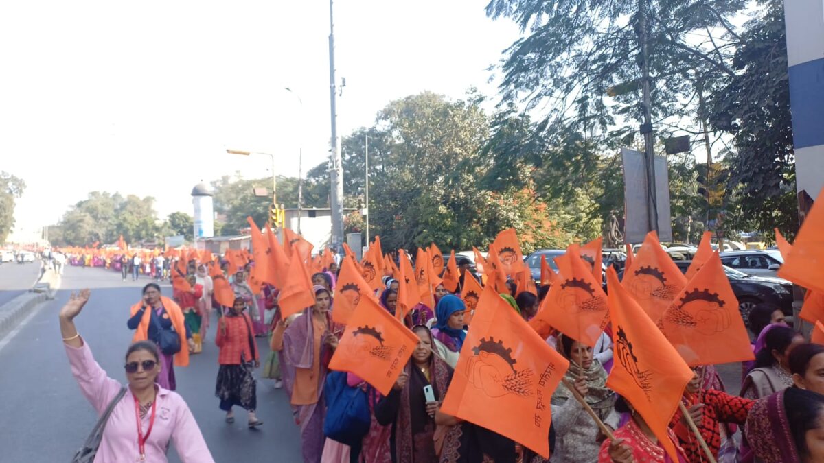 भारतीय मजदूर संघ राजस्थान प्रदेश द्वारा शुक्रवार को जयपुर में नई भर्ती, न्यूनतम मजदूरी, संगठित एवं असंगठित क्षेत्र के मजदरों यथा आंगनबाडी कार्यकर्ता, आषा सहयोगिनी, निर्माण मजदूर, प्राईवेट ट्रांसपोर्ट, रोडवेज, विद्युत, एनएचएम, सर्वषिक्षा, लोक जुम्बिश, प्राईवेट सैक्टर, औद्योगिक क्षेत्र इत्यादि संवर्ग के श्रमिकों, कर्मचारियों से जुड़ी समस्याओं के समाधान की मांग को लेकर एक विशाल श्रमिक क हुंकार रैली का आयोजन किया गया। यह रैली सुबह 11 बजे शहीद स्मारक से प्रारंभ होकर सिविल लाइंस फाटक तक निकाली गईए जिसमें हजारों संगठित एवं असंगठित क्षेत्र के श्रमिकों, कर्मचारियों और विभिन्न महासंघों के प्रतिनिधियों ने भाग लिया। रैली सिविल लाइंस फाटक के पास एक विशाल आम सभा में परिवर्तित हो गई।