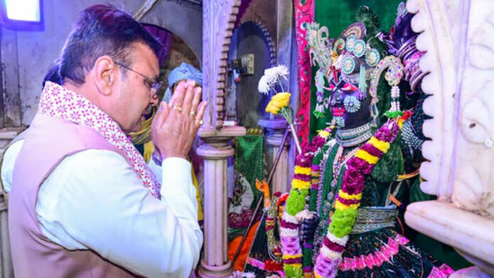 जयपुर/भरतपुर। मुख्यमंत्री भजनलाल शर्मा बुधवार को सपरिवार ब्रज क्षेत्र के प्रमुख धार्मिक स्थल पूंछरी का लौठा पहुंचे। जहां मुख्यमंत्री ने श्रीनाथ जी मंदिर के समक्ष दंडवत होकर नमन किया। इसके बाद उन्होंने श्रीनाथ जी और गिरिराज जी की विशेष पूजा-अर्चना की। यहां मुख्यमंत्री ने प्रदेश की सुख-समृद्धि, शांति और जनकल्याण की कामना की।
