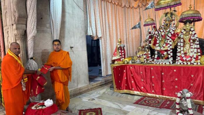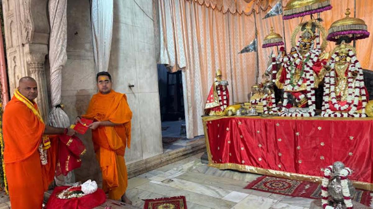 जयपुर। आराध्य श्री गोविंददेव जी मंदिर में गुरुवार को श्री हनुमान चालीसा प्रबन्ध समिति के तत्वावधान में 1100 श्री महालक्ष्मी यंत्रों की विशेष पूजा-अर्चना कर परिक्रमा की गई। मंदिर महंत अंजन कुमार गोस्वामी के सान्निध्य में मंदिर के सेवाधिकारी मानस गोस्वामी ने यंत्रों को ठाकुरजी के श्री चरणों में रखा। समिति के संस्थापक अमरनाथ महाराज ने संकीर्तन करते हुए यंत्रों को सिर पर रखकर गर्भ गृह की परिक्रमा की।