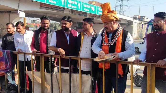 जयपुर। हरमाड़ा क्षेत्र के जयपुर–सीकर हाईवे स्थित रोड नंबर 14 पर रविवार सुबह राजनीति और जनसंपर्क का खास दृश्य देखने को मिला। पूर्व कैबिनेट मंत्री प्रताप सिंह खाचरियावास सालासर दर्शन के लिए जा रहे थे, तभी कांग्रेस कार्यकर्ताओं ने उनका भव्य स्वागत कर माहौल को उत्सव में बदल दिया।