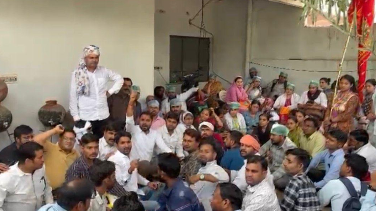 Contract nurses staged a sit-in at the residence of Minister Dr. Kirodi Lal Meena following a foot march from Dausa to Jaipur.
