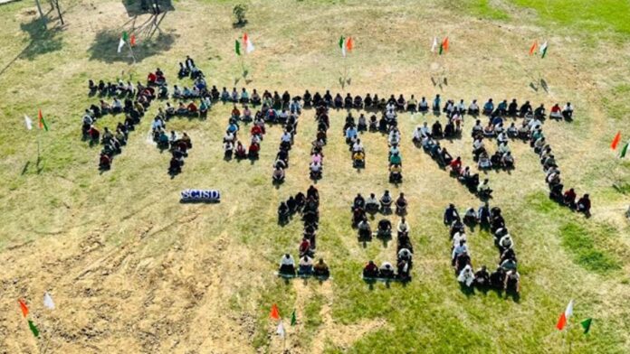 जयपुर। दौसा के विशिष्ट केंद्रीय कारागृह श्यालावास में बुधवार को देशभक्ति और राष्ट्रीयता की भावना से ओतप्रोत एक विशेष कार्यक्रम आयोजित किया गया। यह आयोजन वंदे मातरम् राष्ट्रगीत के 150 वर्ष पूर्ण होने के ऐतिहासिक अवसर पर किया गया। इस दौरान कारागृह के मैदान में लगभग चार सौ बंदियों और जेल स्टाफ ने मिलकर एक विशाल मानव श्रृंखला बनाई। जिससे जमीन पर वंदे मातरम् शब्द की आकृति तैयार हुई। बंदी संदीप अग्रवाल, विकास शर्मा और दीनदयाल ने इस आकृति को बनाने में महत्वपूर्ण सहयोग किया।