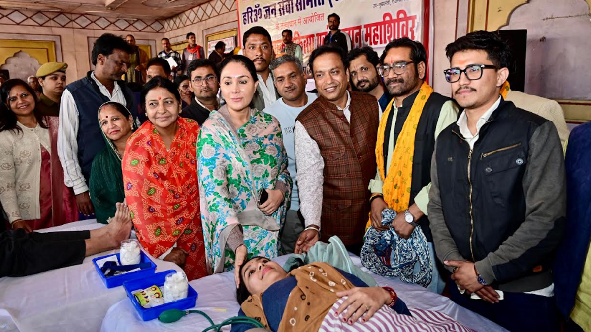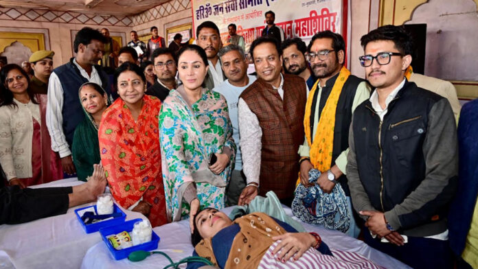 जयपुर। सीकर रोड स्थित श्री स्वयंवर मैरिज गार्डन मे रविवार को विशाल निशुल्क चिकित्सा एवं रक्तदान महाशिविर का आयोजन किया गया। हरि ओम जनसेवा समिति जयपुर एवं आयु वेलफेयर एंड चैरिटेबल ट्रस्ट जयपुर के संयुक्त तत्वावधान में आयोजित रक्तदान शिविर में उपमुख्यमंत्री दीया कुमारी ने शिरकत की।