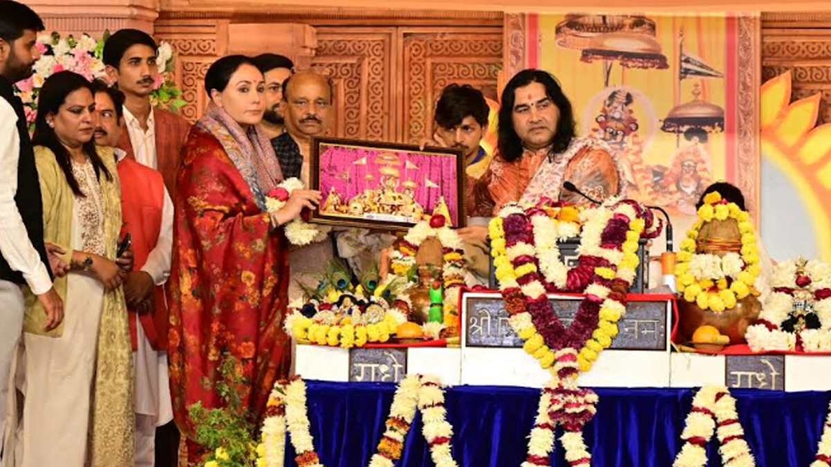 श्रीमद् भागवत कथा में उपमुख्यमंत्री दीया कुमारी ने लिया देवकीनन्दन ठाकुर का दिव्य आशीर्वाद