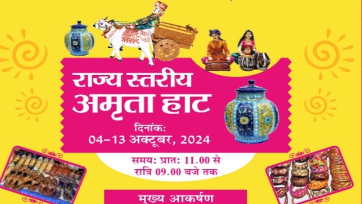 जयपुर। महिला अधिकारिता महिला एवं बाल विकास विभाग द्वारा जयपुर के जवाहर कला केंद्र में राज्य स्तरीय अमृता हाट का आयोजन आगामी 04 अक्टूबर से 13 अक्टूबर तक प्रतिदिन सुबह 11 बजे से रात्रि 9 बजे तक किया जाएगा।