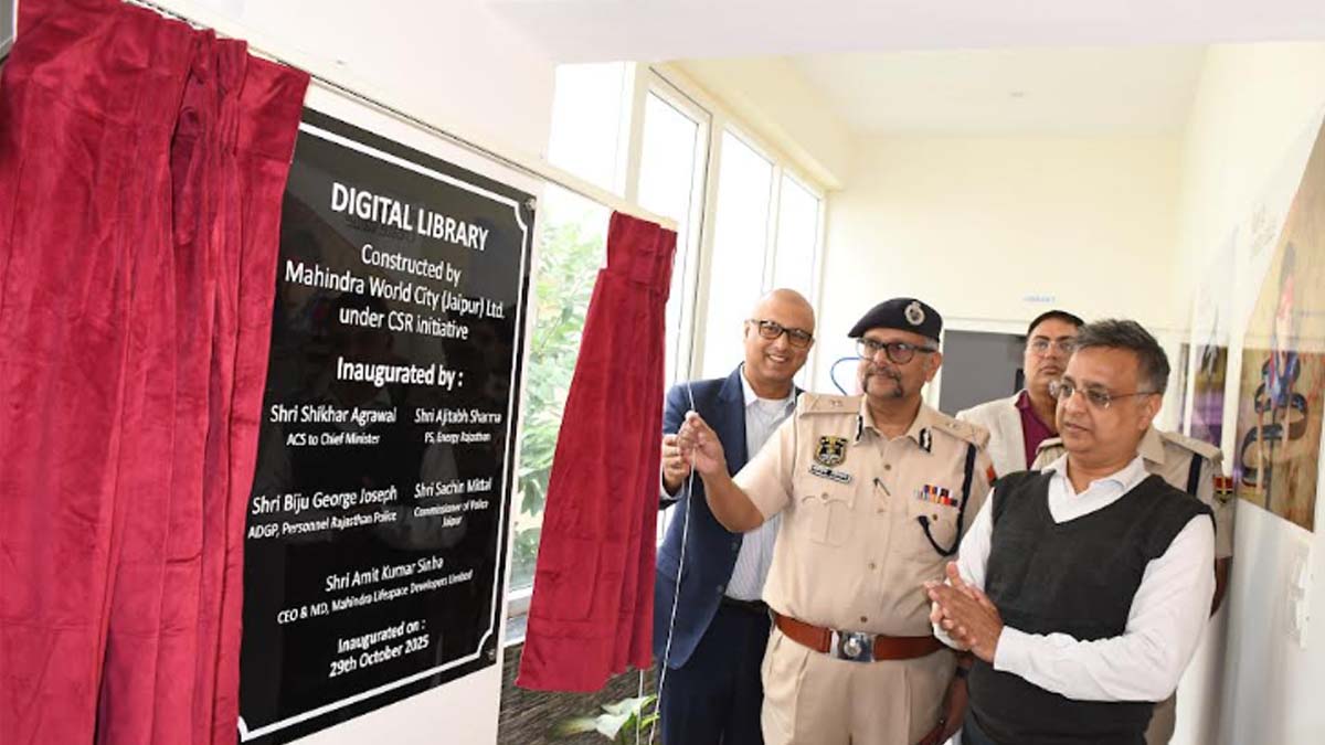 जयपुर। जयपुर पुलिस कमिश्नर सचिन मित्तल एवं प्रमुख शासन सचिव ऊर्जा अजिताभ शर्मा ने बुधवार को रिजर्व पुलिस लाईन में महिंद्रा वर्ल्ड सिटी (जयपुर) लिमिटेड के सहयोग से 75 लाख रुपए की लागत से निर्मित डिजिटल लाइब्रेरी का फीता काटकर शुभारंभ किया है।