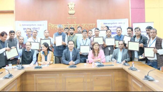 जयपुर। विशेष गहन पुनरीक्षण कार्यक्रम के तहत परिगणना प्रपत्रों के डिजिटलीकरण कार्य में उत्कृष्ट प्रदर्शन करने वाले जुझारू,समर्पित एवं प्रेरक 95 बूथ लेवल अधिकारियों (बीएलओ) को जिला निर्वाचन अधिकारी डॉ. जितेन्द्र कुमार सोनी ने प्रशस्ति पत्र प्रदान कर सम्मानित किया।
