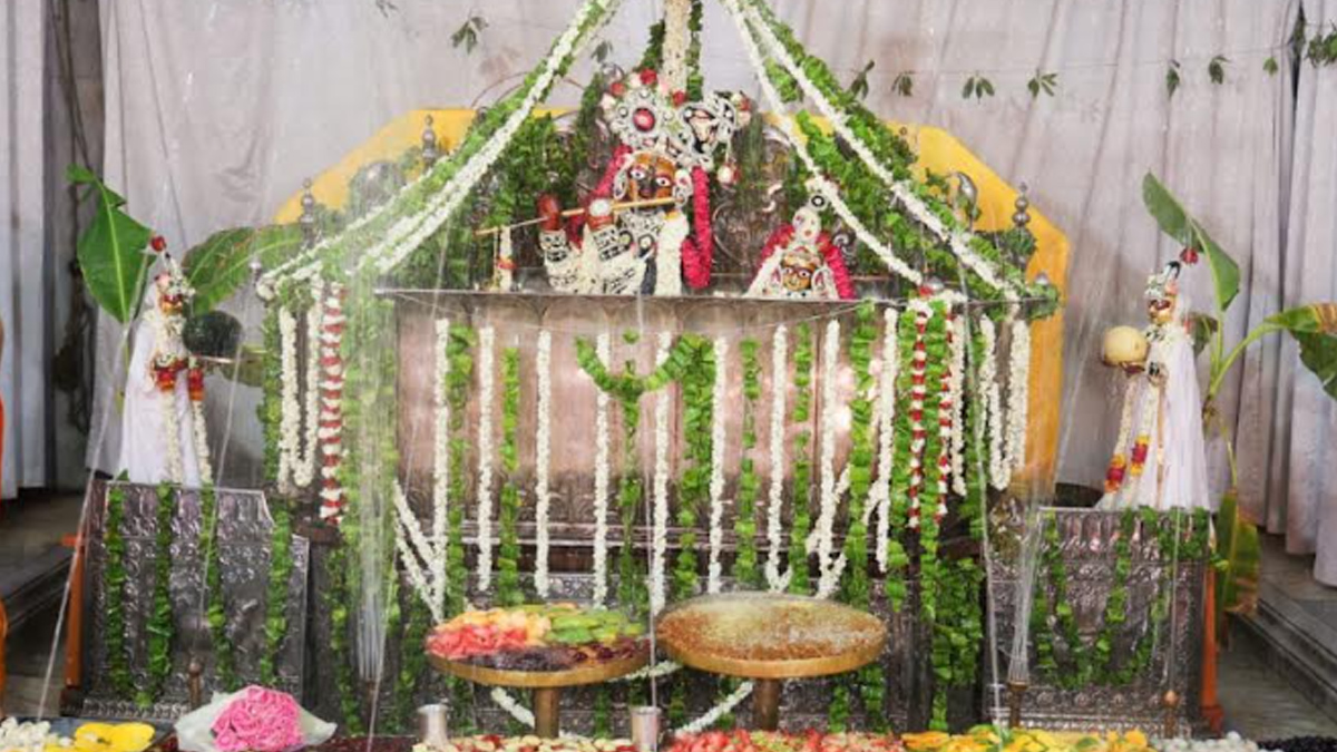 अभिषेक के बाद ठाकुरजी को पांच तरह के फल, पांच तरह का दाल बिजोना, पंच मेवा, ठंडाई और लड्डू का भोग लगाया गया। जुगलवर के अभिषेक के दौरान चांदी की होदी को आगे से टाटी से ढक दिया गया, जिससे श्रद्धालुओं को ठाकुरजी और राधा रानी के मुखारविंद के ही दर्शन हुए।