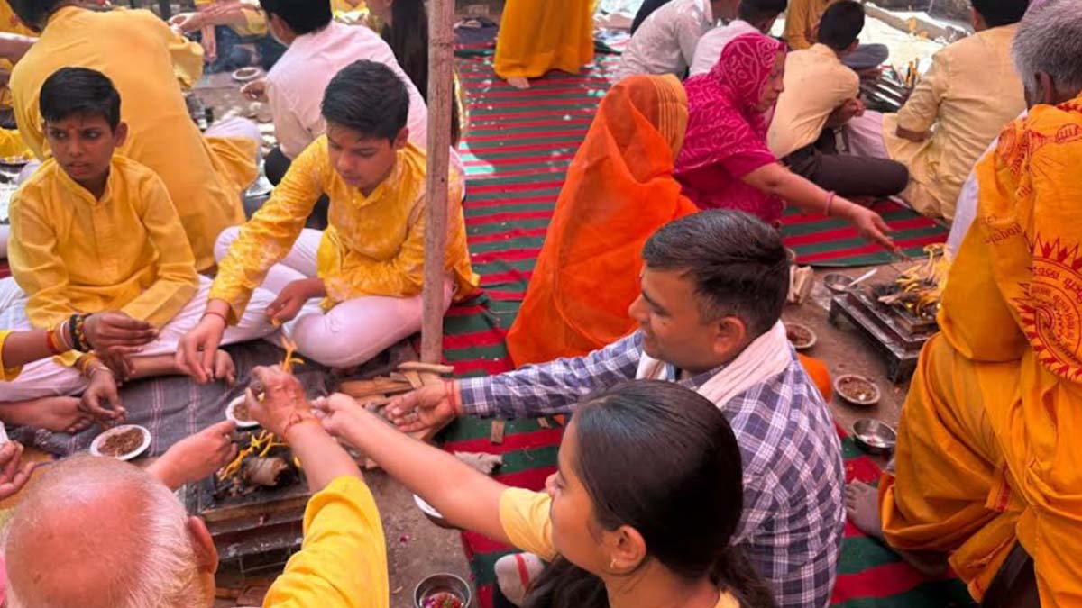 जयपुर। गायत्री चेतना केन्द्र दुर्गापुरा की ओर से सोमवार को टोंक रोड के बंबाला स्थित कृषि नगर स्थित न्यू शाइन स्टार पब्लिक स्कूल में पंच कुंडीय गायत्री महायज्ञ किया गया। विद्यार्थियों ने केक सहित जंक फूड कम करने, मोबाइल का सीमित उपयोग करने, गायत्री मंत्र लेखन का संकल्प लिया। यज्ञ में विद्यालय के स्टाफ, विद्यार्थियों के साथ बड़ी संख्या में ग्राम वासियों ने भी भाग लिया। दो पारियो में यज्ञ में विश्व शांति के लिए आहुतियां अर्पित की। यज्ञ की पूर्णाहुति में विद्यार्थियों ने संकल्प लिया कि वे जंक फूड नहीं खाएंगे और मेधावी बनने के लिए गायत्री मंत्र का जप और लेखन करेंगे।