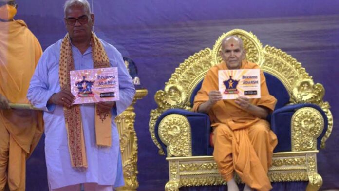 “चलो बने आदर्श” बीएपीएस संस्था की एक अनूठी शैक्षणिक एवं संस्कारमूलक पहल है। जिसके अंतर्गत विद्यार्थियों में शिक्षण, संस्कार, संस्कृति और स्वास्थ्य जैसे मूल्यों का संवर्धन वीडियो लेक्चर्स के माध्यम से किया जाता है, ताकि वे भविष्य में आदर्श बालक, आदर्श विद्यार्थी और आदर्श नागरिक बन सकें। इस अवसर पर महंत स्वामी महाराज ने मंत्री के सुदृढ़ स्वास्थ्य, दीर्घायु और सफल कार्यकाल के लिए भगवान से प्रार्थना की।