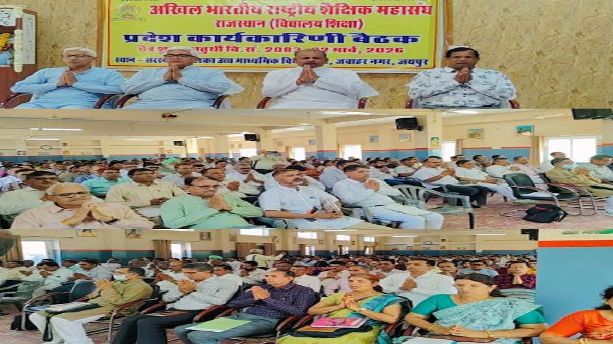 जयपुर। अखिल भारतीय राष्ट्रीय शैक्षिक महासंघ राजस्थान (विद्यालय शिक्षा) की प्रदेश कार्यकारिणी बैठक सरस्वती बालिका उच्च माध्यमिक विद्या मंदिर, जवाहर नगर में सम्पन्न हुई। कार्यक्रम की शुरुआत मां सरस्वती व मां भारती के चित्रों पर माल्यार्पण व दीप प्रज्वलन से हुई।