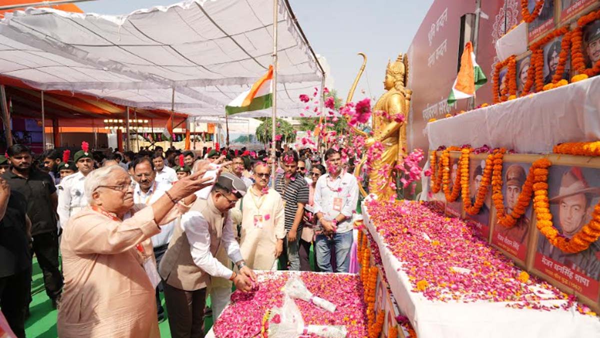 जयपुर। राजधानी जयपुर के दशहरा मैदान में चल रहे हिंदू आध्यात्मिक एवं सेवा फाउंडेशन की ओर से आयोजित सेवा मेले में परमवीर वंदन कार्यक्रम आयोजित किया गया। प्रदेश सचिव सोमकांत शर्मा ने बताया कि कार्यक्रम में पांच हजार से अधिक युवाओं ने भागीदारी की भारत में धर्म और राष्ट्र-सामाजिक जीवन में एकाकार हैं। इस प्राचीन देश के अलावा सनातन धर्म के लिए कोई धरती सुलभ नहीं है । एक सशक्त राष्ट्र के बिना कोई भी सुरक्षित नहीं है। इसलिए भारत राष्ट्र को एक देवता जैसा सम्मान दिए जाने की जरूरत है तथा इस राष्ट्र की सेवा करने वालों का भी सम्मान होना चाहिए।