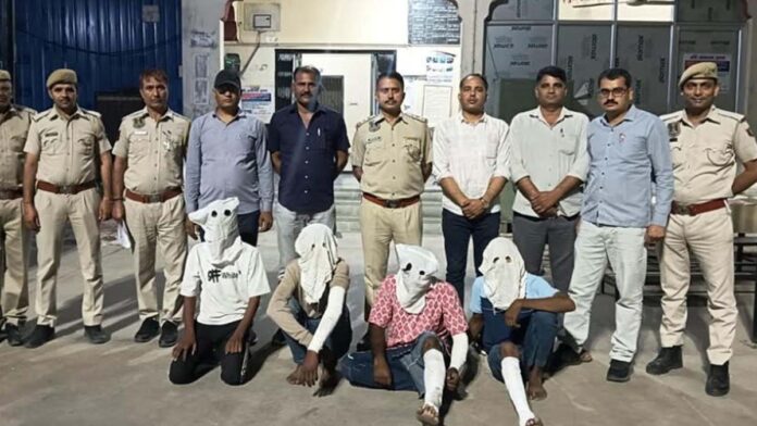 पुलिस उपायुक्त जयपुर दक्षिण दिगंत आनंद ने बताया कि मुहाना थाना पुलिस ने कार्रवाई करते हुए 23 अक्टूबर की रात को श्री राम प्रजापति ज्वैलर्स मालिक रामकरण प्रजापत की गाडी को रूकवाकर सरिये आदि से हमला कर सोने-चांदी के जेवरात लूट कर ले जाने की वारदात करने वाले आरोपी रोहित सैनी उर्फ रिंकू निवासी मुहाना जिला जयपुर, अंकित मीणा निवासी बामनवास जिला गंगापुर सिटी हाल मुहाना जिला जयपुर ,दीपक बलाई निवासी चाकसू जिला जयपुर हाल मुहाना जिला जयपुर और लोकेश सैनी निवासी लालसोट जिला दौसा हाल मुहाना को जिला को बापर्दा गिरफ्तार किया है।