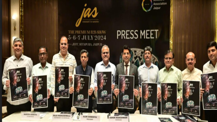 जयपुर। ज्वैलर्स एसोसिएशन जयपुर की ओर से पांच से सात जुलाई तक सीतापुरा के जेईसीसी में जेएएस-2024 में जयपुर के जड़ाऊ गहनों और रंगीन रत्नों का भव्य संसार सजने जा रहा है। जिसके चलते बुधवार को ज्वैलर्स एसोसिएशन जयपुर के पदाधिकारियों ने एक पोस्टर विमोचन किया। जेएएस-2024 देश के सबसे बड़े बी2बी (बिजनेस टू बिजनेस) शो में से एक है। यह ग्लोबल ज्वैलरी ट्रेड में जेएएस 2024 अंतर्राष्ट्रीय स्तर का शीर्ष प्लेटफॉर्म है। जहां जयपुर के ज्वैलर्स और रत्न व्यवसायी अपनी ज्वैलरी के साथ प्रेसियस और सेमी प्रेसियस कलर स्टोन का प्रदर्शन करने वाले हैं।