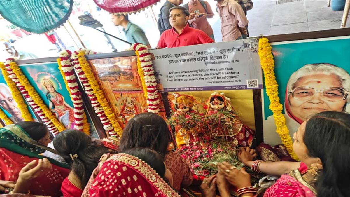 गायत्री शक्तिपीठ ब्रह्मपुरी के दिनेश आचार्य और डॉ. अजय भारद्वाज ने विधिवत मंत्रोच्चार के साथ यज्ञ कराया। भारद्वाज ने सुखद दाम्पत्य जीवन के सूत्र बताए। दस पारी में श्रद्धालुओं ने आहुतियां देकर परिवार और समाज के मंगल की कामना की। पहली बार गणगौर पूजन कर रही नव विवाहिताओं को गायत्री परिवार की ओर सुहाग की सामग्री भेंट की गई।