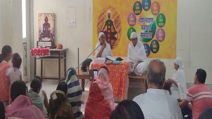 इससे पूर्व मंगलवार को रात्रि मे माताजी के मुखाबिन्द से 48 दीपकों से भक्ताम्बर स्तोत्र का पाठ हुआ । बुधवार प्रातः माताजी ससंग शांतीनगर स्थित शांतिनाथ दिगंबर जैन मंदिर के दर्शन किए ।