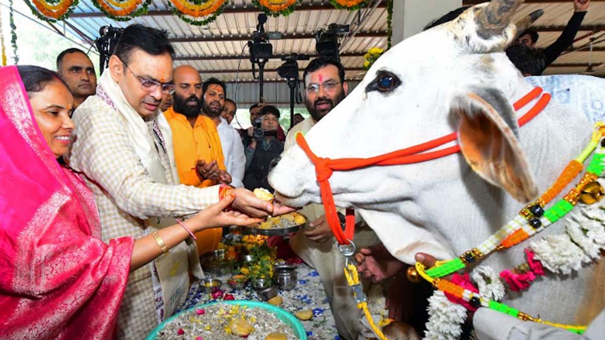 गौशाला में गोपाष्टमी महोत्सव :मुख्यमंत्री भजनलाल शर्मा ने सपत्नीक गौ माता की पूजा अर्चना की