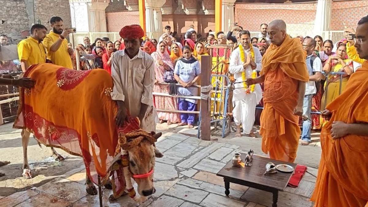 साथ ही ठाकुर श्रीजी के सम्मुख गौमाता एवं बछड़ों के खिलौने सेवा में रखे गए। जिसमें ठाकुर श्रीजी के गोचारण भाव से अद्भुत दर्शन हुए। इस दिन ठाकुर श्रीजी को माखन मिश्री का विशेष भोग अर्पण किया गया। साथ ही श्रृंगार झांकी पश्चात महंत अंजन कुमार गोस्वामी द्वारा गौ पूजन मंदिर प्रांगण में तुलसा मंच पर किया गया। सर्वप्रथम गौ माता का अभिषेक, जिसके पश्चात श्रृंगार,आरती एवं भोग अर्पण किया गया। मंदिर प्रशासन द्वारा पिंजरापोल गौशाला द्वारा सभी भक्तों के गौ माता पूजन की व्यवस्था सत्संग भवन में मंगला से राजभोग झांकी तक रखी गई है।