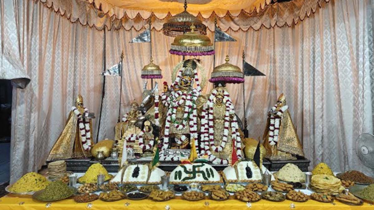 गोवर्धन पर्व के उपलक्ष्य में अन्नकूट महोत्सव का आयोजन हर्षोल्लास और श्रद्धा के साथ संपन्न हुआ। सुबह मंगला आरती के बाद ठाकुर श्रीजी का पंचामृत अभिषेक कर प्राचीन सुनहरी पोशाक धारण कराई गई और विशेष अलंकार से श्रृंगार किया गया।