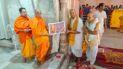 गोविंद देवजी मंदिर के महंत अंजन कुमार गोस्वामी और प्रबंधक मानस गोस्वामी ने निमंत्रण पोस्टर ठाकुरजी के चरणों में अर्पित कर दुपट्टा, प्रसाद देकर शुभकामनाएं दी। इसके बाद चांदी की टकसाल स्थित काले हनुमान मंदिर में भी निमंत्रण दिया। राजकुमार शर्मा ने माला पहनाकर और प्रसाद देकर शुभकामनाएं दी।