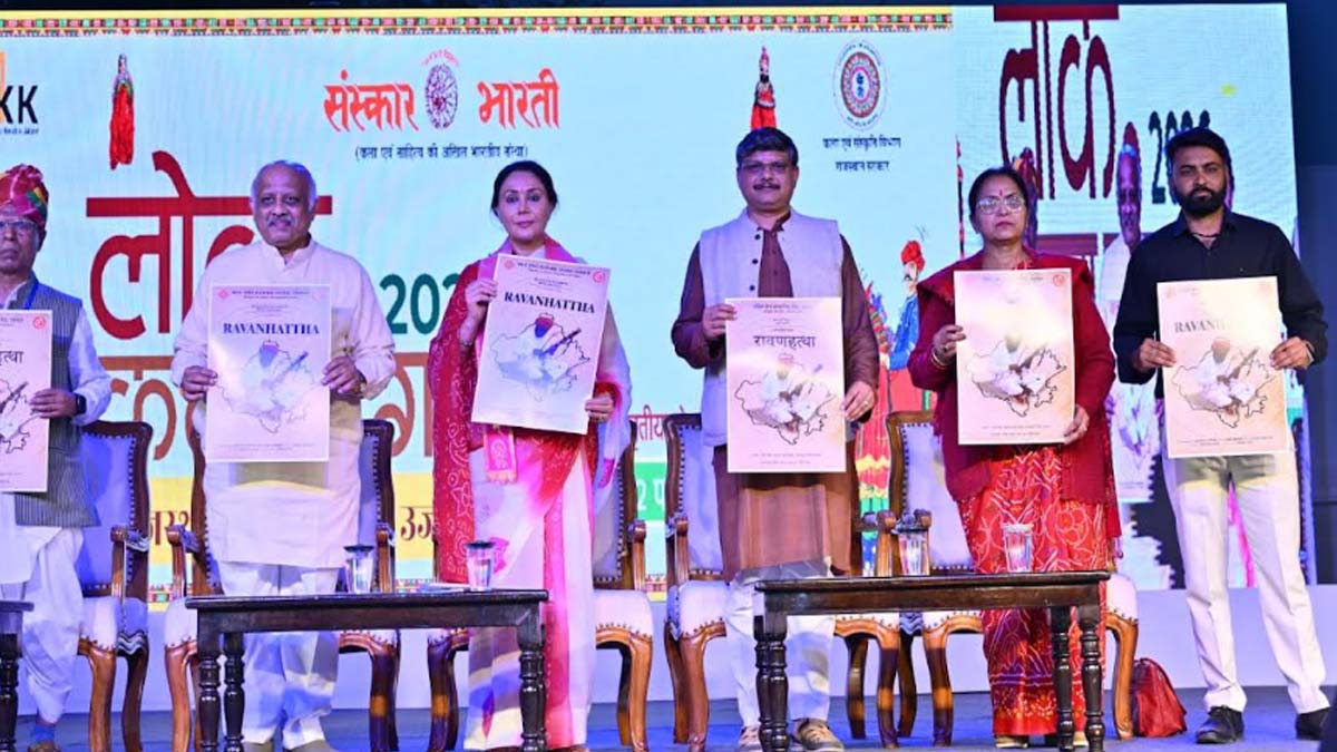 जयपुर। जवाहर कला केंद्र में संस्कार भारती द्वारा आयोजित लोक कला संगम कार्यक्रम के समापन अवसर पर राजस्थान की प्राचीन लोक वाद्य परंपरा पर आधारित डाक्यूमेंट्री फिल्म ‘रावण हत्था’ के पोस्टर का विमोचन राजस्थान की उपमुख्यमंत्री दिया कुमारी के मुख्य आतिथ्य में हुआ।