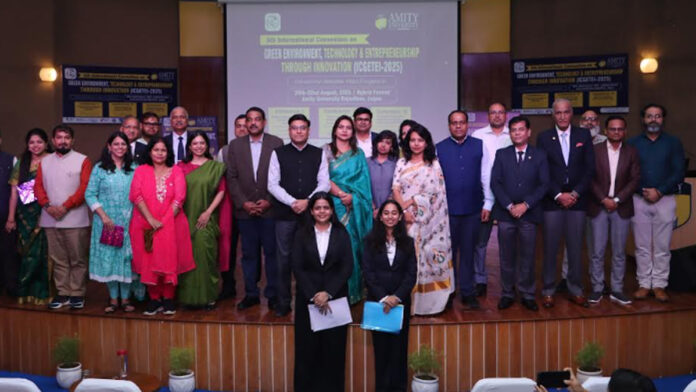 जयपुर। एमिटी यूनिवर्सिटी जयपुर के द्वारा ग्रीन एनवायरमेंट, टेक्नोलॉजी और उद्यमिता पर तीन दिवसीय इंटरनेशनल कांफ्रेंस ‘‘ग्रीन एनवायरमेंट टेक्नोलॉजी एंड एंटरप्रिन्योरशिप थ्रू इनोवेशन (आईसीजीईटीईआई-2025)‘‘ का आयोजन किया गया। तीन दिवसीय कांफ्रेंस का उद्घाटन रितनंद बलवेद एजूकेशन फाउंडेशन के प्रेजीडेंट डॉ. अशोक के. चौहान और एमिटी यूनिवर्सिटी जयपुर के चांसलर डॉ. असीम चौहान के द्वारा किया गया और शोधकर्ताओं को नवाचार अपनाने के लिए प्रेरित करते हुए संबोधित किया। कार्यक्रम के समापन समारोह में गेस्ट ऑफ ऑनर के रूप में पब्लिक पॉलिसी रिसर्च इंस्ट्टियूट (पीपीआरआई), तिरूवनंतपुरम, केरला के डायरेक्टर प्रोफेसर एस. मोहनाकुमार की प्रेरणादायी उपस्थिति रही।