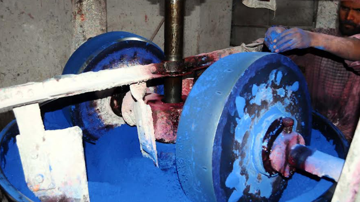 फैक्ट्री कर्मचारी अरविंद सैनी ने बताया कि गुलाल बनाने के लिए पहले अरारोट के चूर्ण में रंग मिलाया जाता है। कुछ समय बाद इसमें सेंट का प्रयोग किया जाता है। स्ट्रॉस गुलाल यानी अरारोट के चूर्ण से बना गुलाल बहुत ही मुलायम होता है। सफेद रंग के अरारोट के चूर्ण में रंग मिलाकर उसे मशीनों से पीसा जाता है। पीसने से पाउडर में रंग मिल जाता है और उसकी कोमलता भी बढ़ जाती है।
