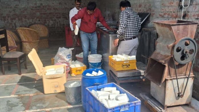 जयपुर। आयुक्त खाद्य सुरक्षा एवं औषधि नियंत्रण राजस्थान डॉक्टर टी. शुभमंगला के निर्देश पर प्रदेश में चलाए जा रहे शुद्ध आहार मिलावट पर वार अभियान के तहत सीएमएचओ जयपुर द्वितीय की फूड सेफ्टी टीम ने जगतपुरा में जेएनयू के पीछे स्थित फर्म हरियाणा डेयरी पनीर के गोदाम पर छापा मारकर लगभग चार सौ किलोग्राम मिलावटी पनीर नष्ट कराया है।