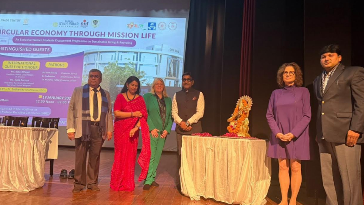 इस कार्यक्रम के दौरान पर्यावरण संरक्षण,अपशिष्ट प्रबंधन और सर्कुलर इकोनॉमी की भूमिका पर विस्तार से चर्चा की गई। तस्वीर में एमआरएआई के अध्यक्ष संजय मेहता और रोबिल वीनर आरईएम्ए की अध्यक्ष सहित सुरेश ज्ञान विहार विश्वविद्यालय और मिशन लाइफ के गणमान्य अतिथि उपस्थित थे।