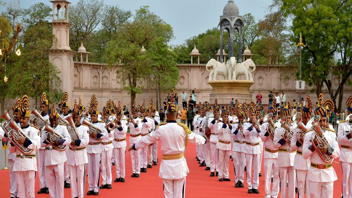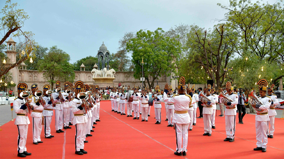 पुलिस बैंड के अद्भुत और अनूठे प्रदर्शन में राजस्थान पुलिस कें सैन्ट्रल बैंड, हाड़ी रानी बटालियन और संयुक्त बैंज (ब्रास बैंड) के बैंड वादकों के दल ने अपनी चित्ताकर्षक प्रस्तुतियों से बड़ी संख्या में उपस्थित हर वर्ग के दर्शकों को भाव-विभोर कर दिया।